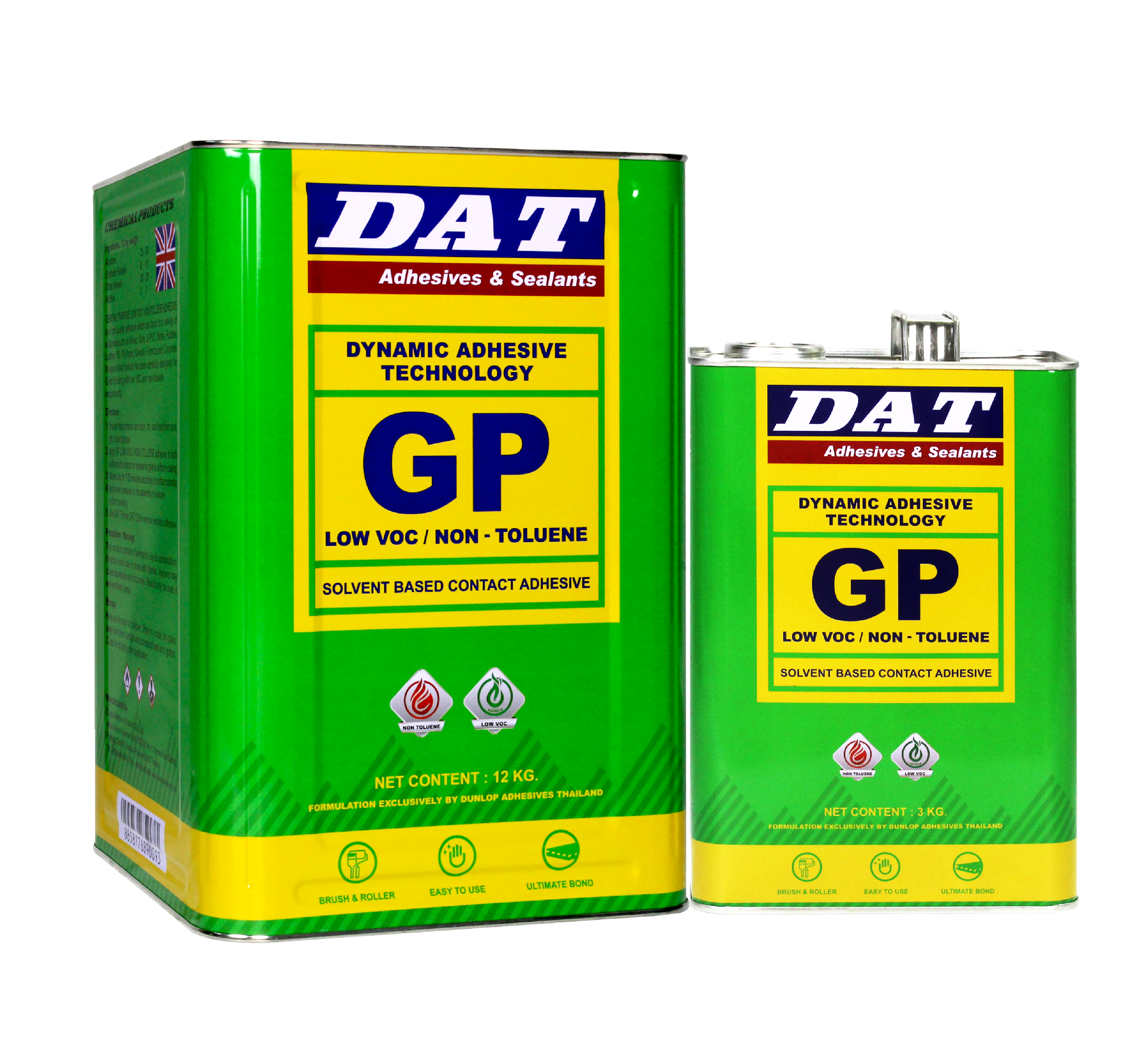 GP LOW VOC เป็นกาวเอนกประสงค์คุณภาพสูงเหมาะสำหรับการยึดติดกับพื้นผิวหลากหลายชนิดเช่นไม้ก๊อกไม้หนัง PVC พีวีซีโฟมปูพรมโลหะและคอนกรีต มีปริมาณสาร VOC ต่ำ และไม่มีโทลูอีน และฟอร์มัลดีไฮด์ต่ำ ทำให้เหมาะสำหรับใช้ในโครงการอาคารสีเขียว