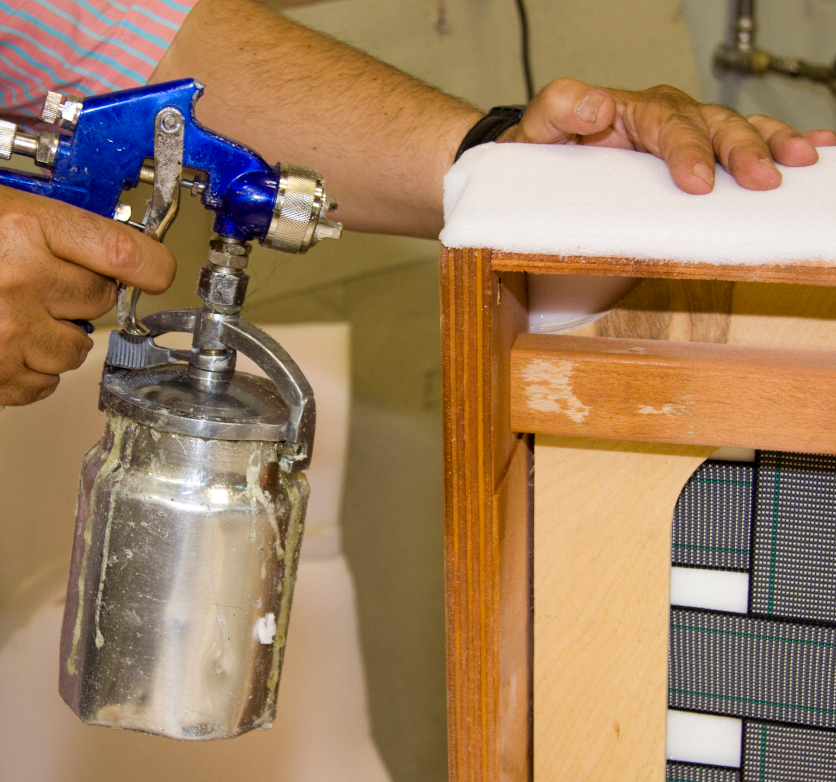 2. พ่นกาว SP Low Smell บนพื้นผิวทั้ง 2ด้าน ด้วยปืนพ่นให้ทั่วอย่างสม่ำเสมอ |